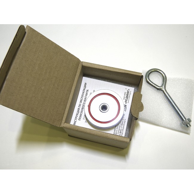 Комплектация Упаковка, магнит поисковый, кольцо с метрической резьбой М10, гайка М10